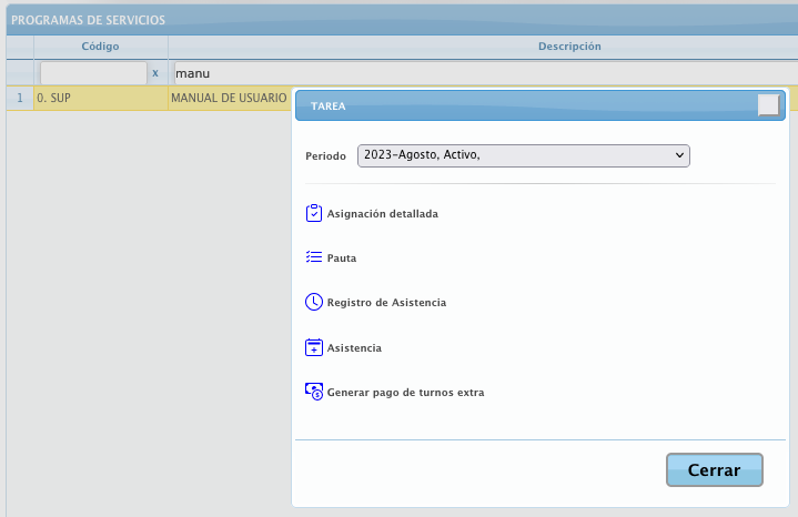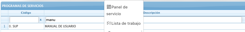 - Programa : Acceso al programa de trabajo (Programa de servicios)