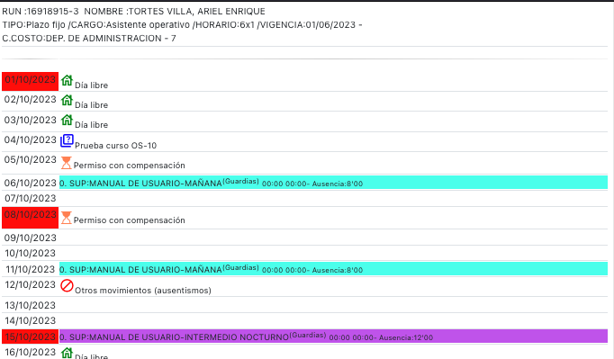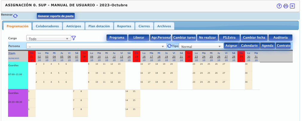 Corresponde a la asignación de turnos provenientes de un programa de trabajo.