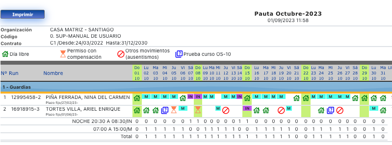 - Pauta : Impresión del formato pauta programado
