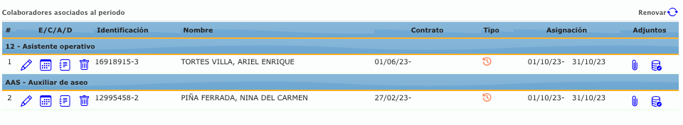 - Contrato : Acceso al contrato de la persona seleccionada.