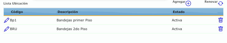 Es la definición de bodegas y sus correspondientes ubicaciones destinadas al almacenamiento y gestión de material al que se le realiza control de stock.