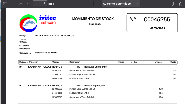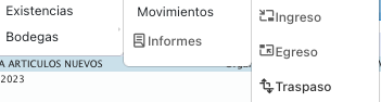- Bodega : Es la bodega seleccionada a la que el usuario tiene acceso.