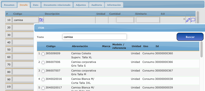 - Numero : El numero es asignado al momento de guardar según configuración (Refierase a "Parametrización de Números".